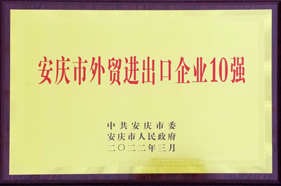 安庆市外贸进出口企业10强 2022.3